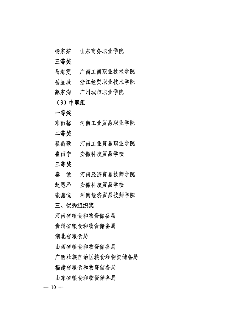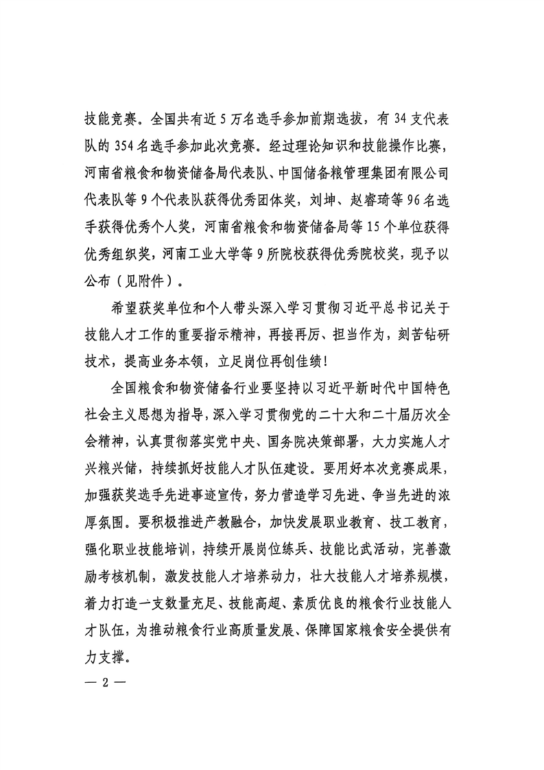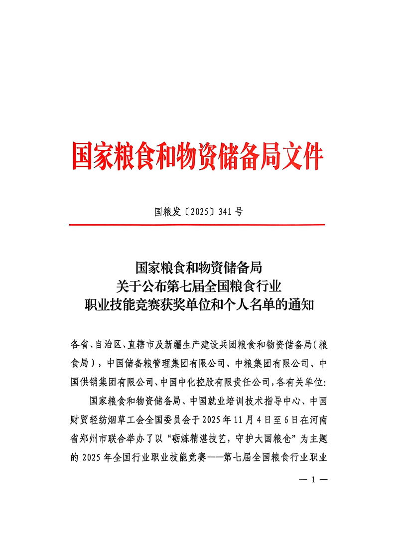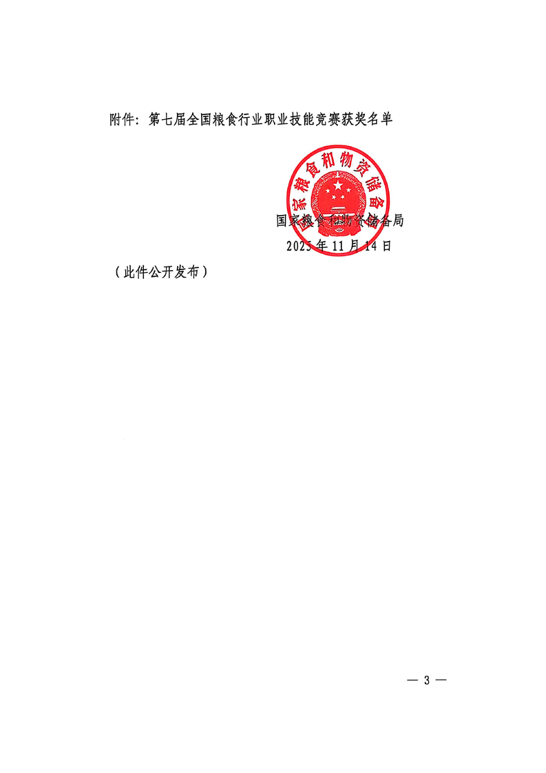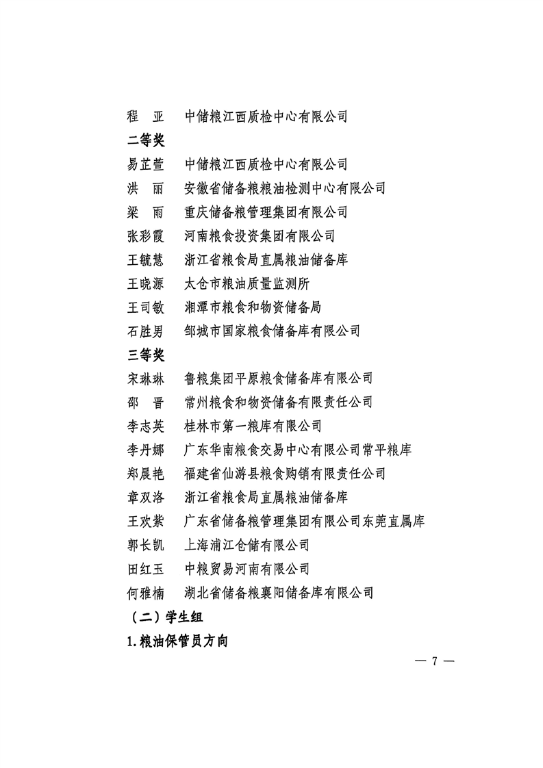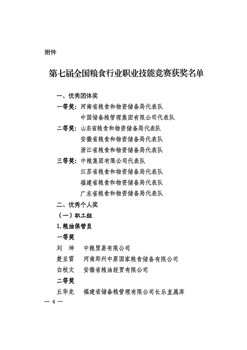 国家粮食和物资储备局关于公布第七届全国粮食行业职业技能竞赛获奖单位和个人名单的通知
