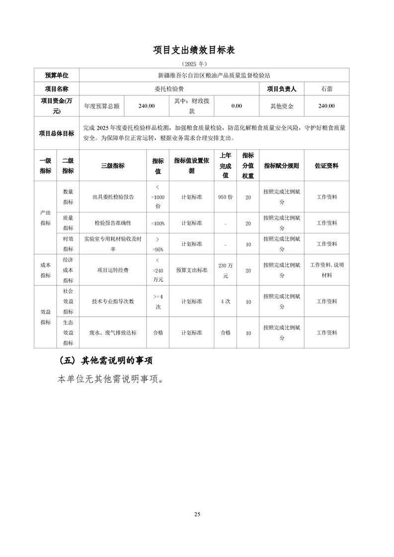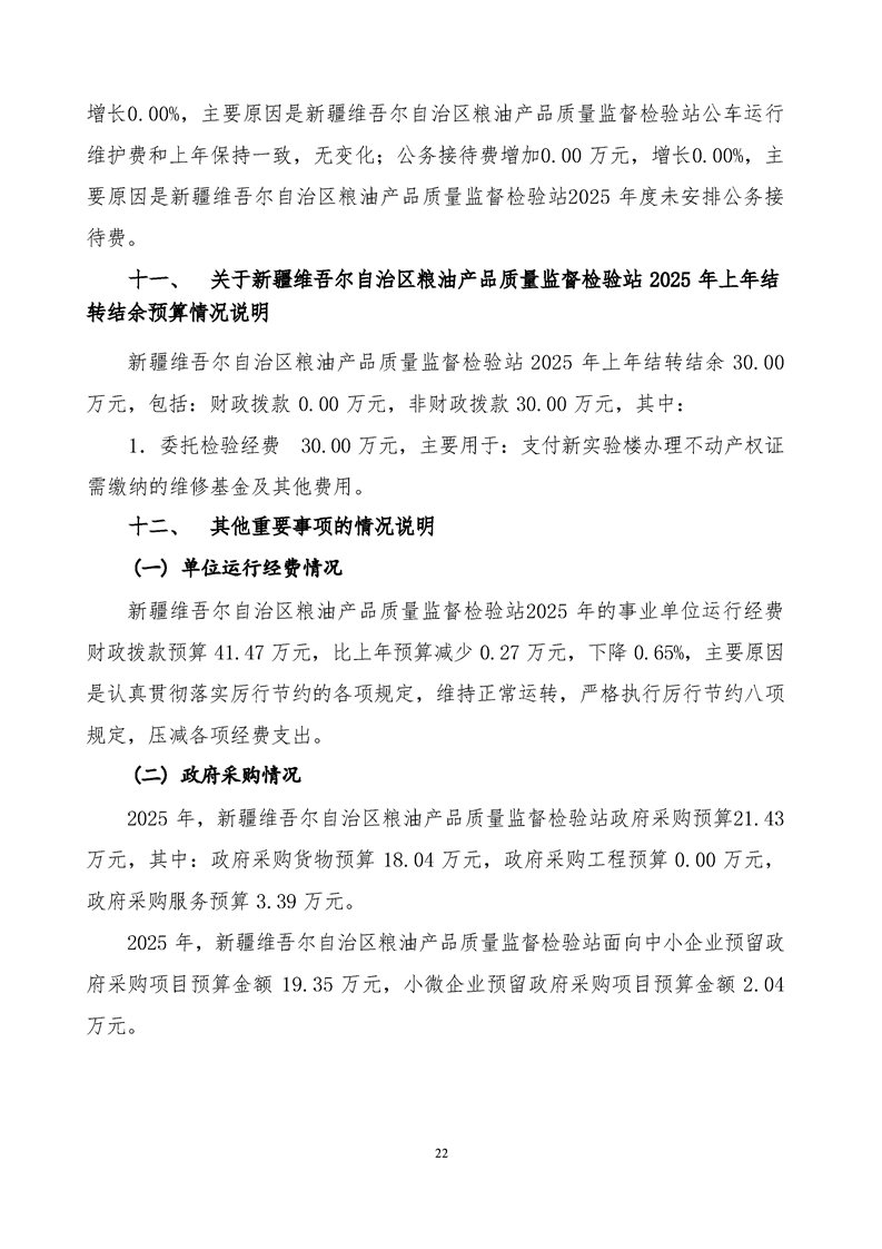 新疆维吾尔自治区粮油产品质量监督检验站2025年单位预算公开报告