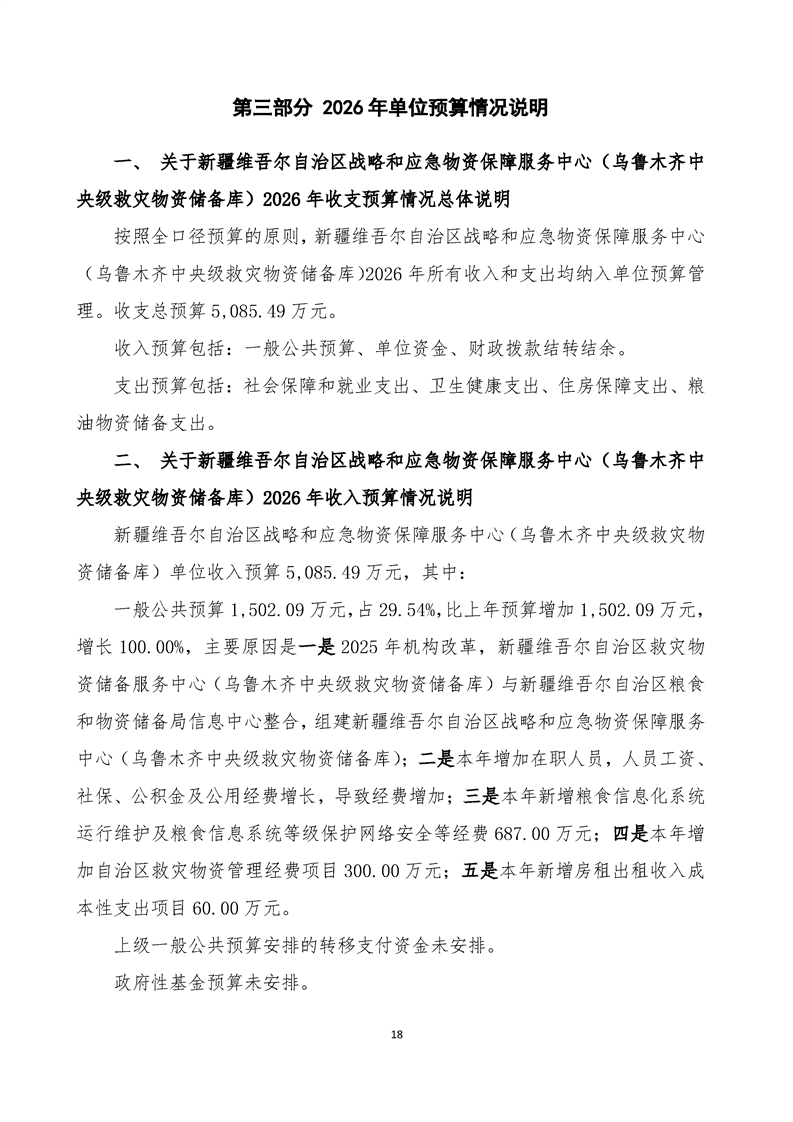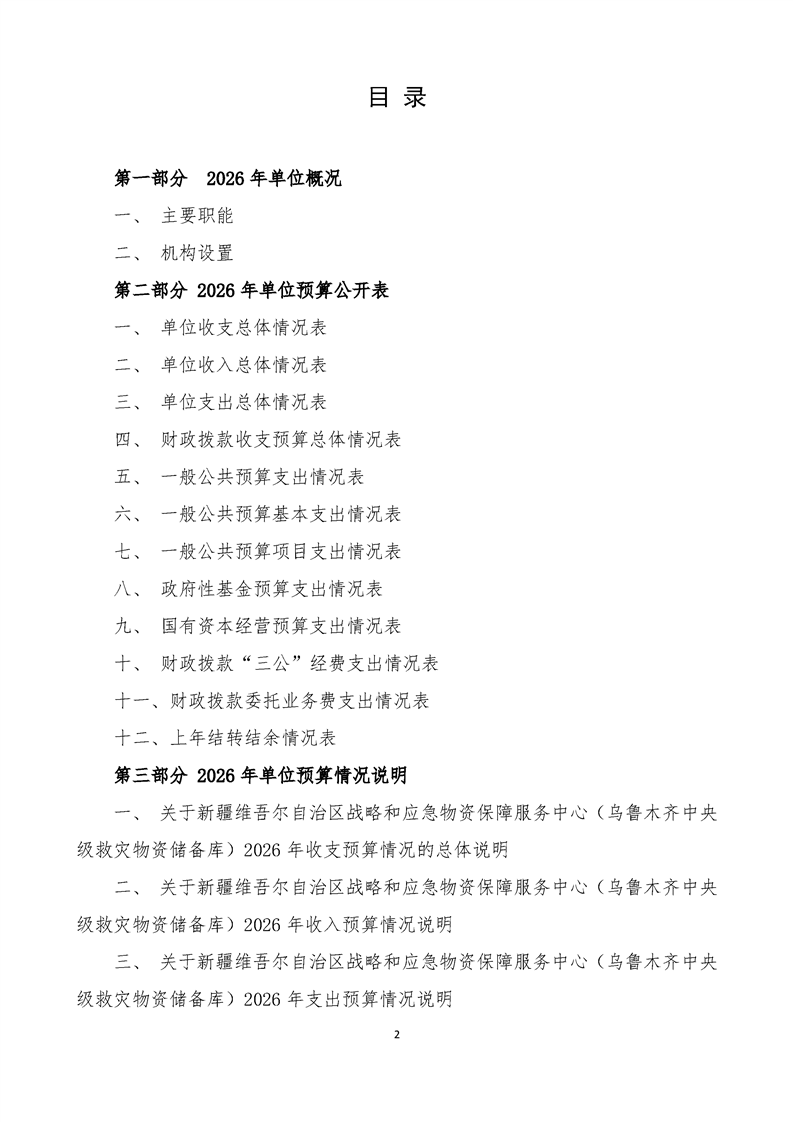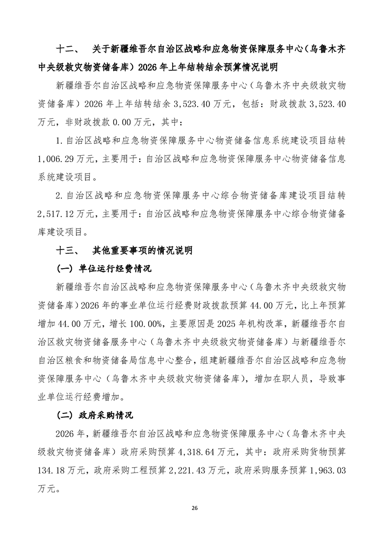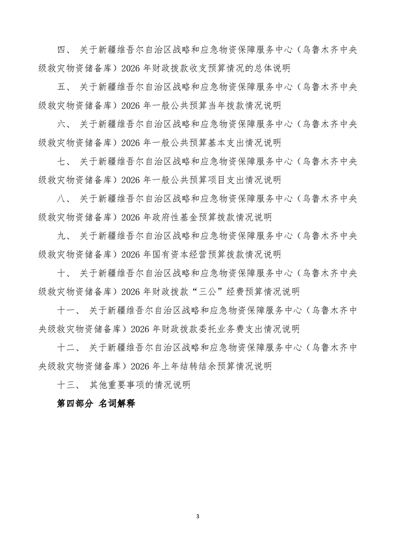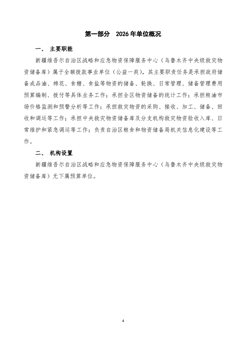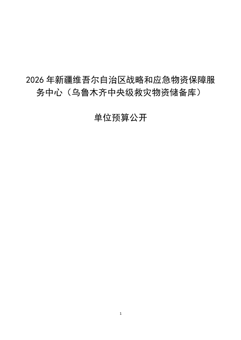 新疆维吾尔自治区战略和应急物资保障服务中心(乌鲁木齐中央级救灾物资储备库)2026年单位预算公开报告