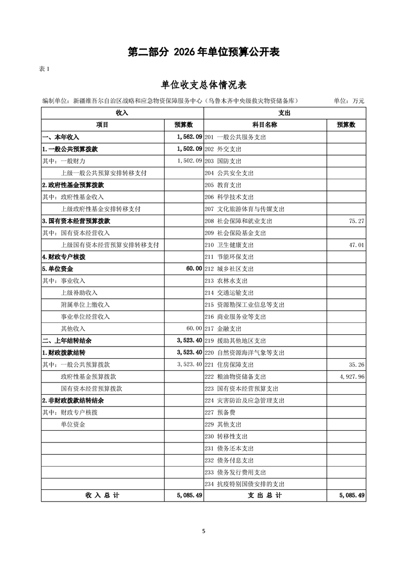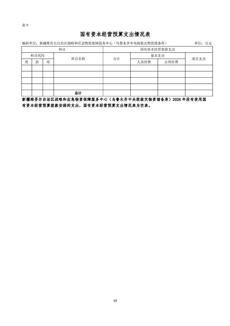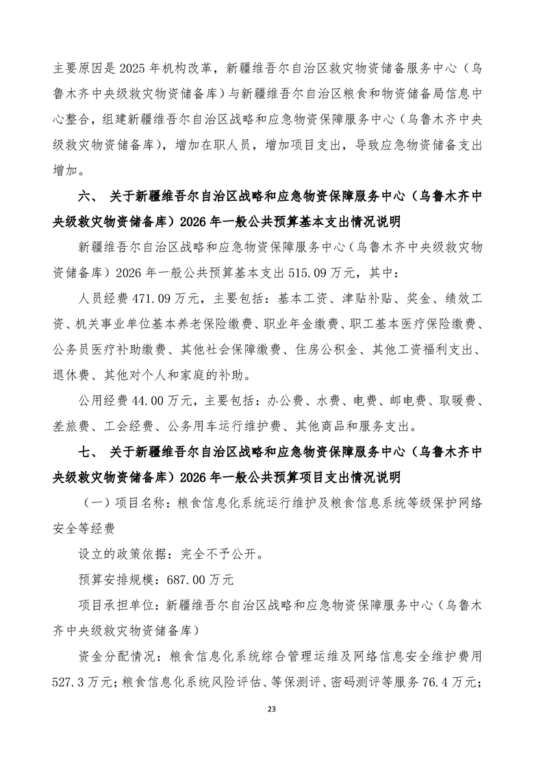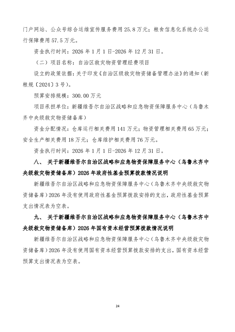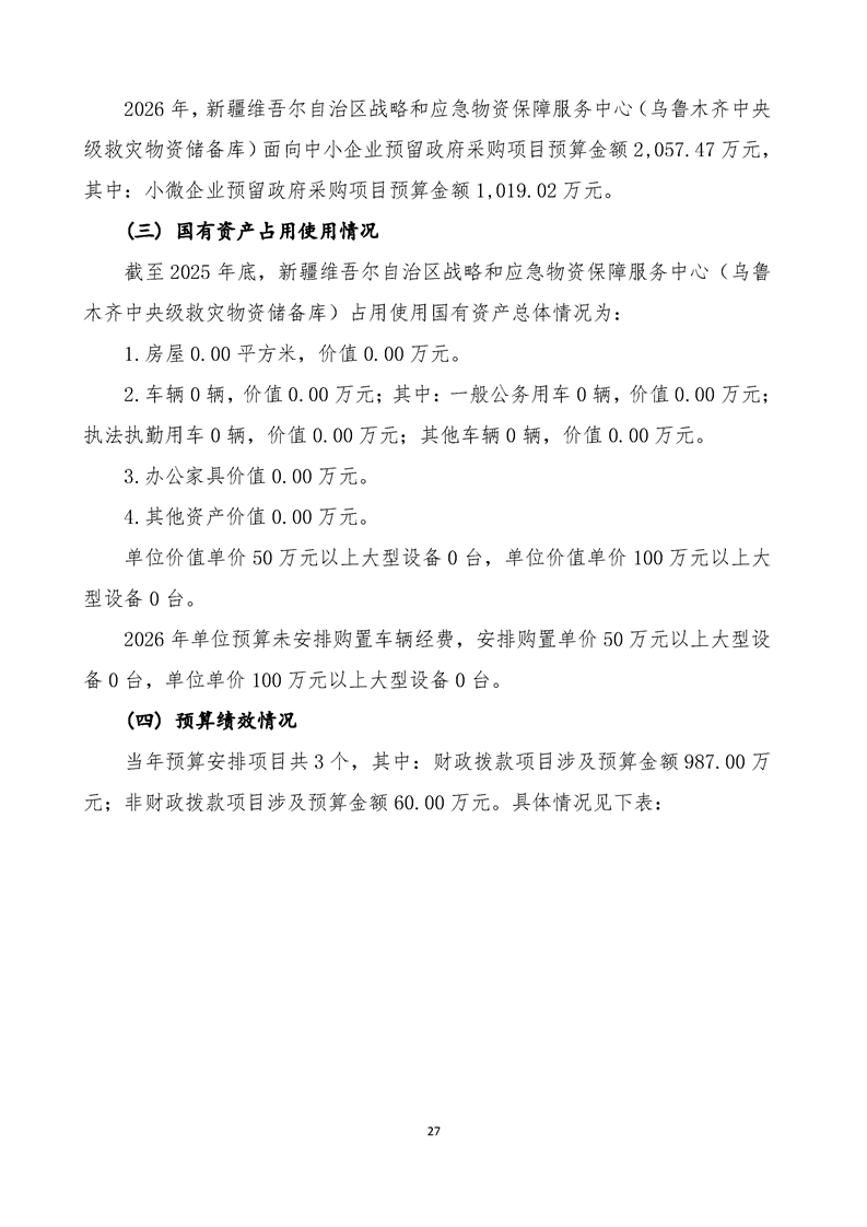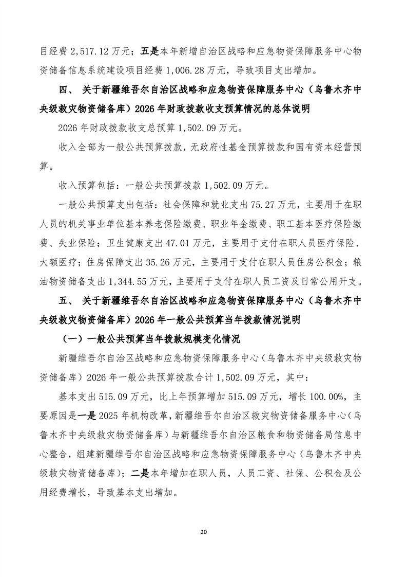 新疆维吾尔自治区战略和应急物资保障服务中心(乌鲁木齐中央级救灾物资储备库)2026年单位预算公开报告