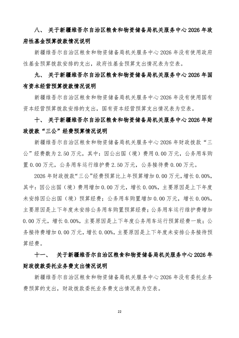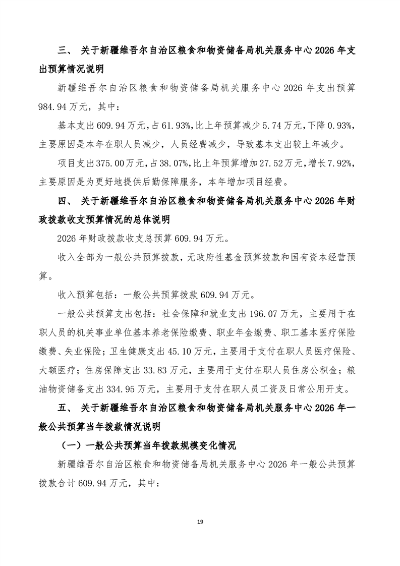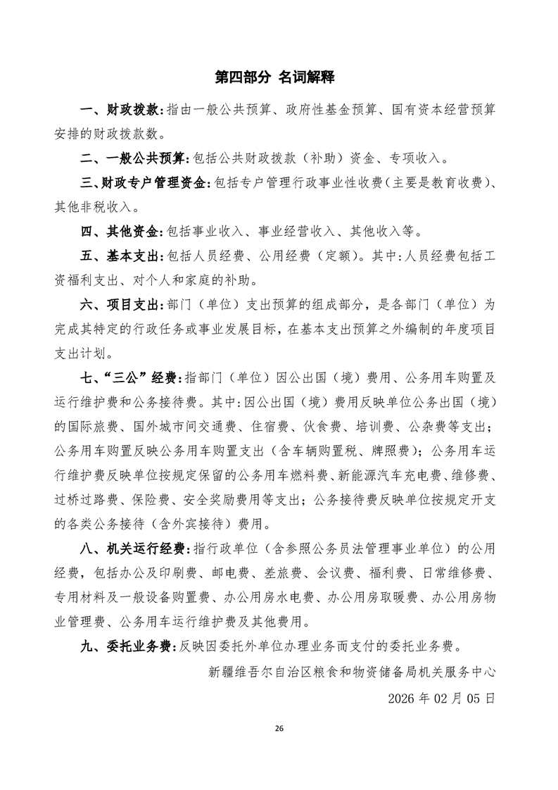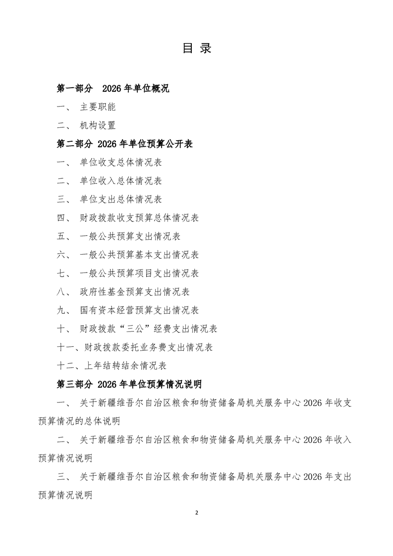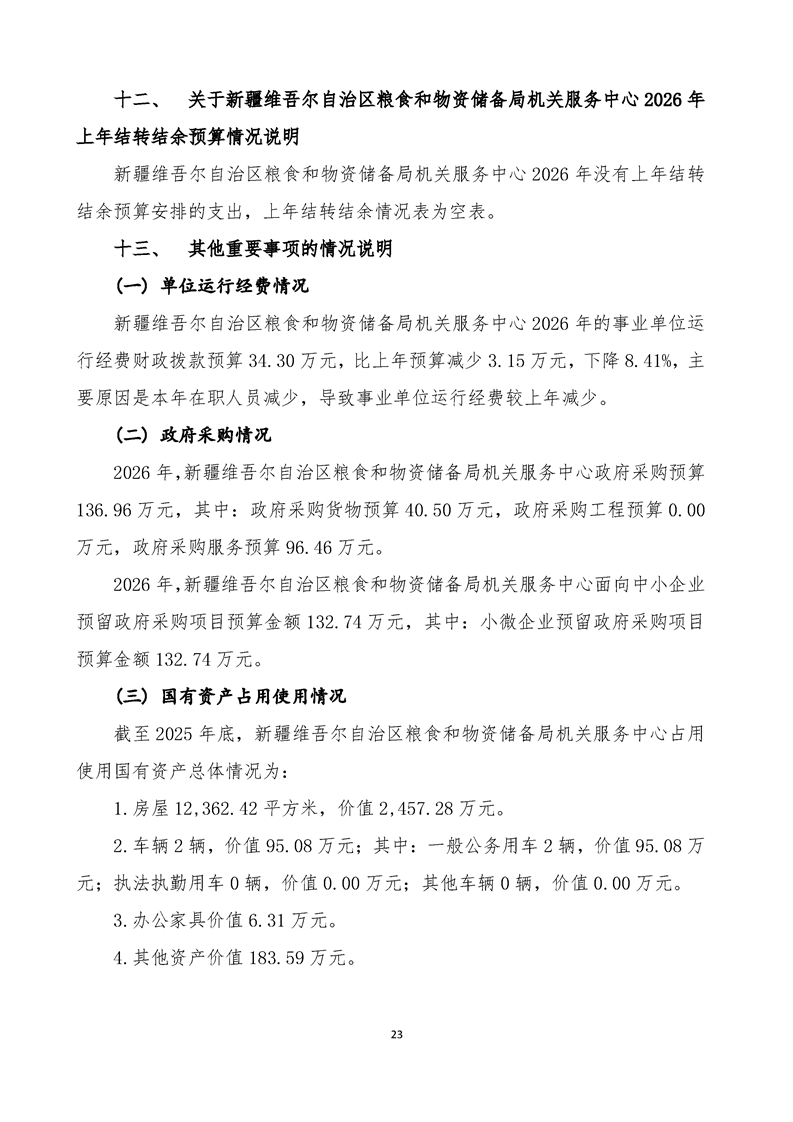 新疆维吾尔自治区粮食和物资储备局机关服务中心2026年单位预算公开报告