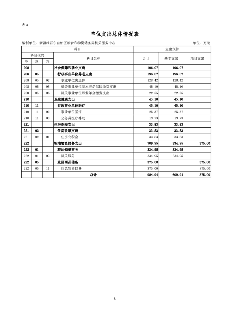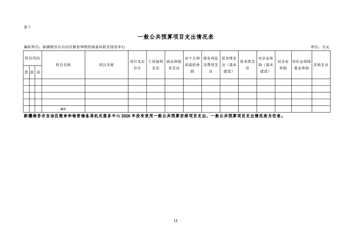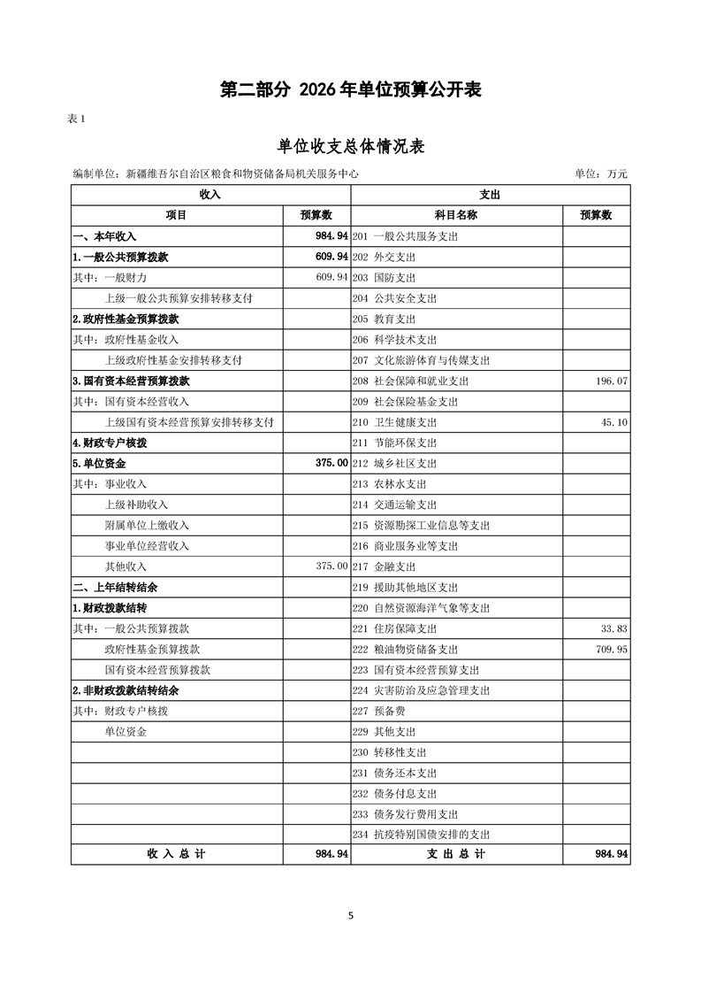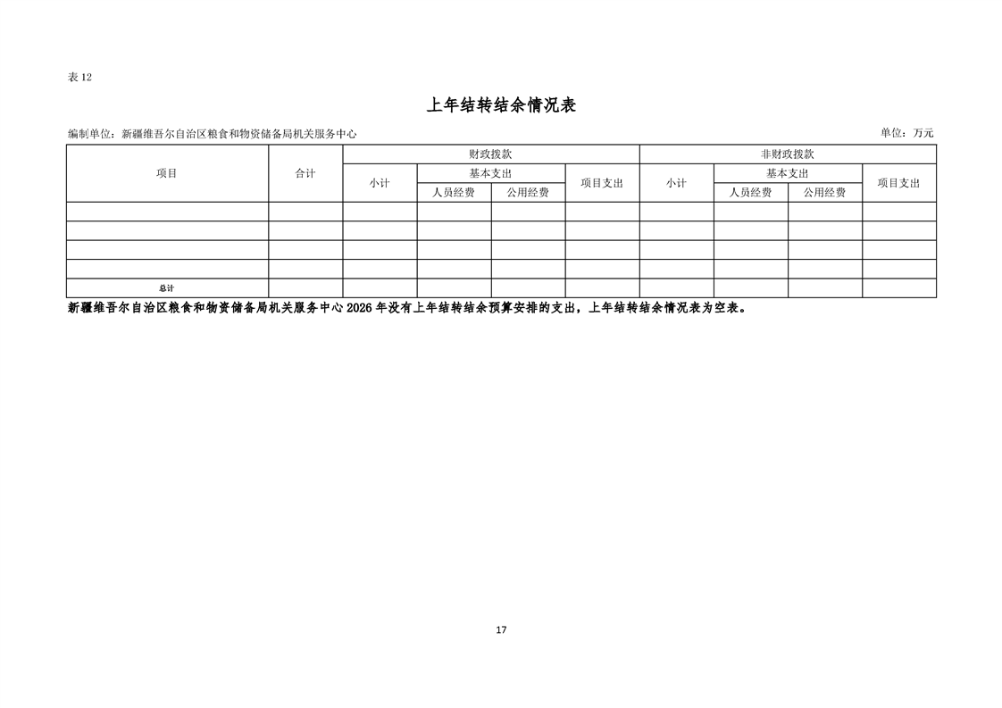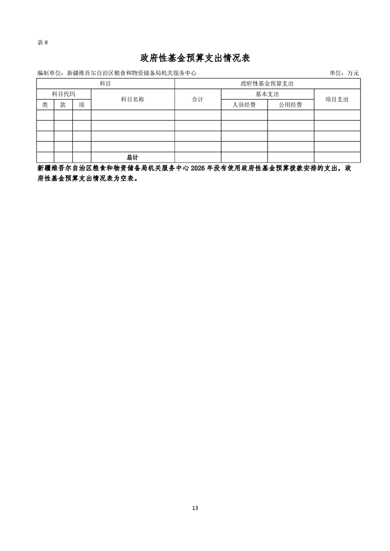 新疆维吾尔自治区粮食和物资储备局机关服务中心2026年单位预算公开报告