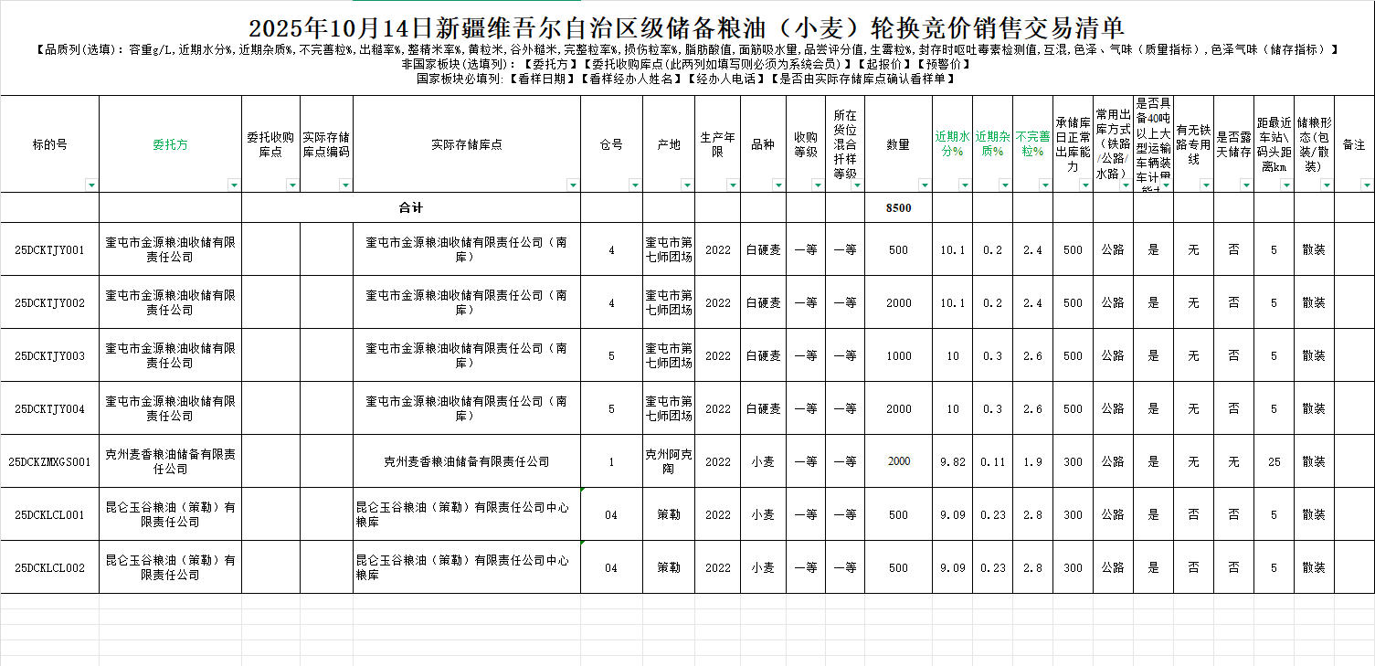 2025年10月14日新疆维吾尔自治区级储备粮油(小麦)轮换竞价销售交易清单