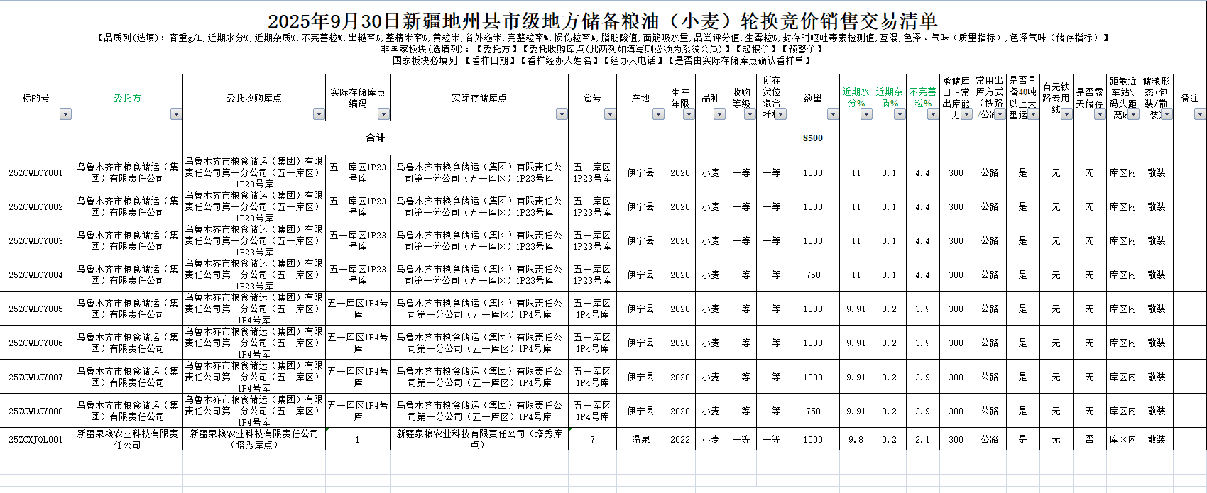 2025年9月30日新疆地州县市级地方储备粮油(小麦)轮换竞价销售交易清单