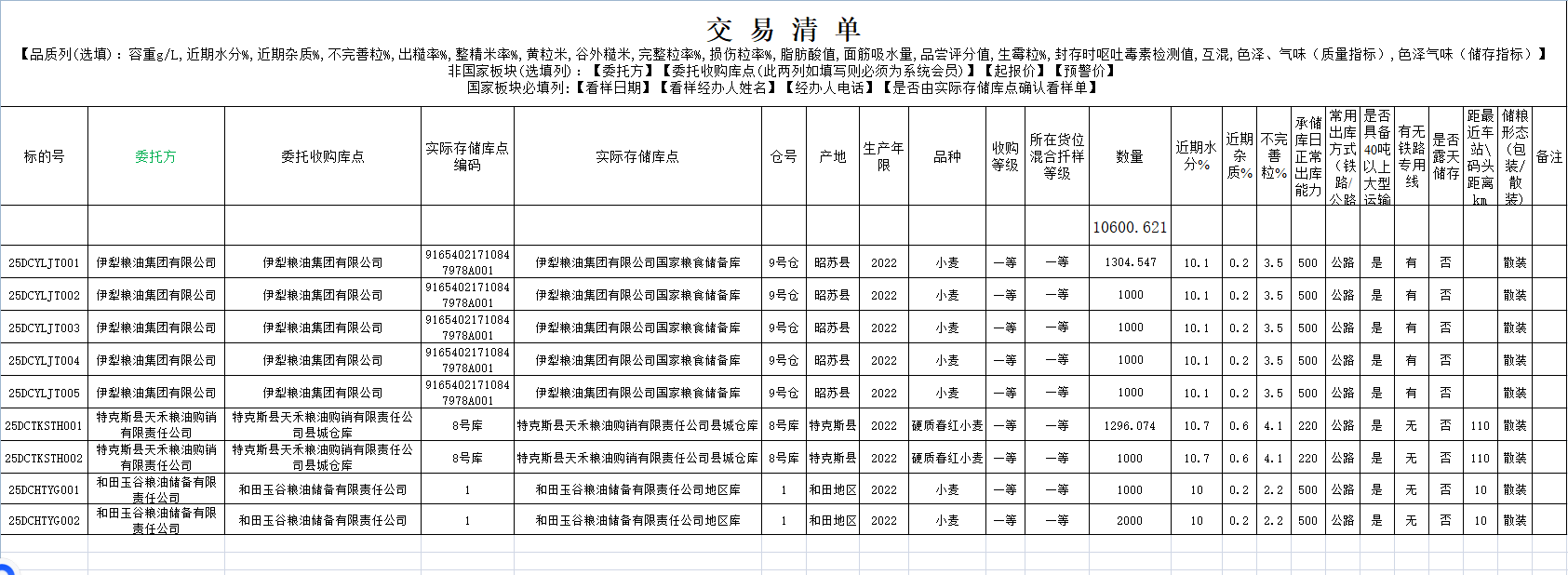 2026年1月27日新疆维吾尔自治区级储备粮油(小麦)轮换竞价销售交易清单