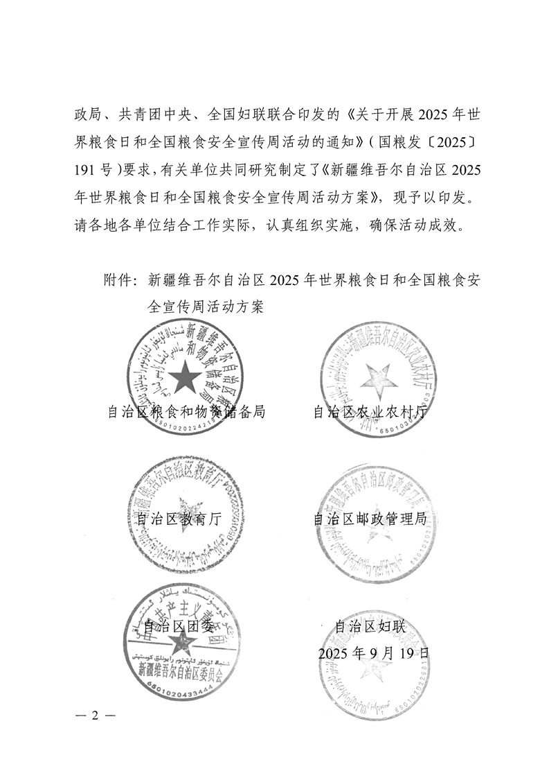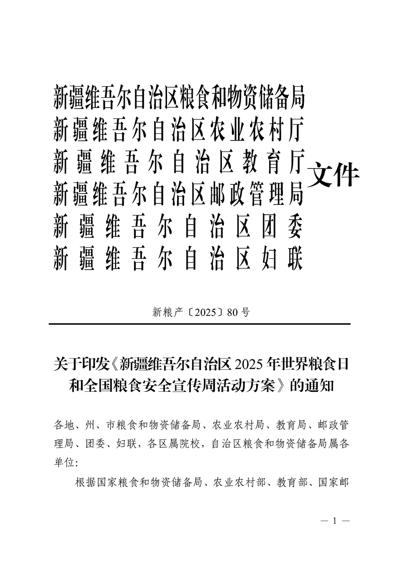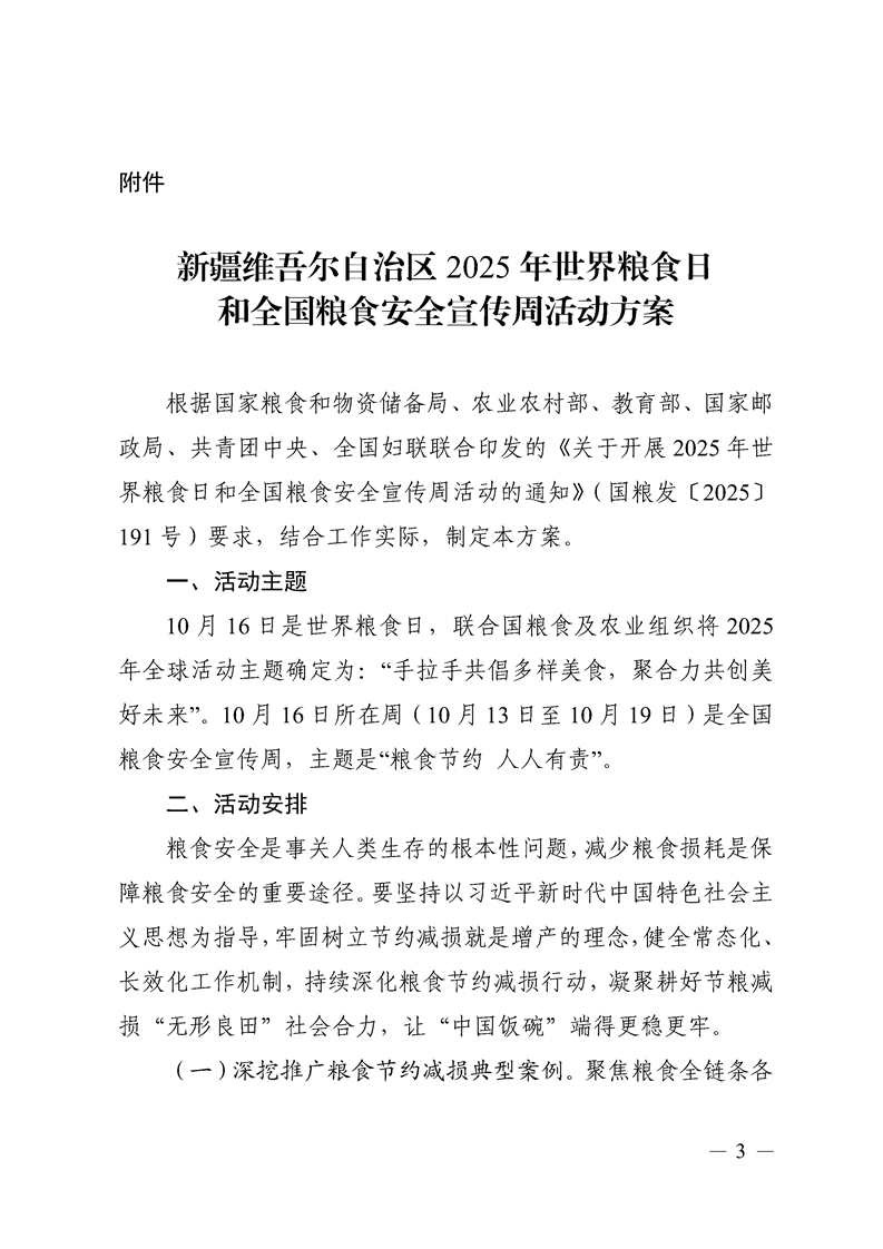 关于印发《新疆维吾尔自治区2025年世界粮食日和全国粮食安全宣传周活动方案》的通知